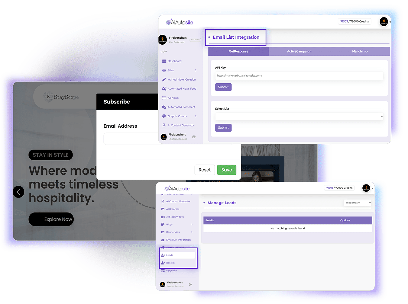 It also has instant plug 'n play integration with GetResponse, ActiveCampaign, and MailChimp.
